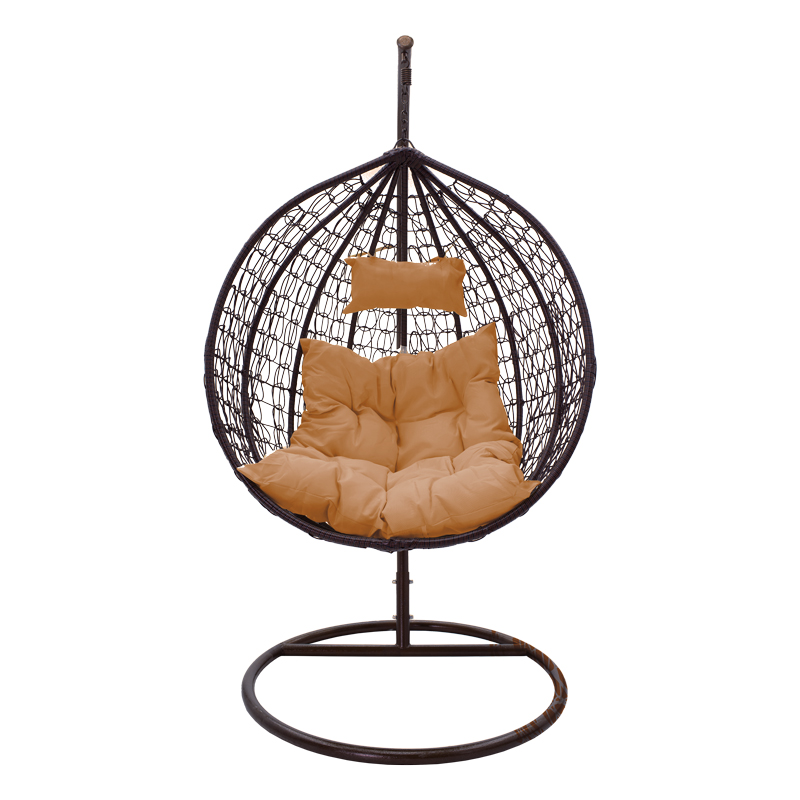Κούνια Zafer pakoworld κρεμαστή μέταλλο-pp καφέ σφ.-μαξιλάρι μπεζ 106x103x200εκ