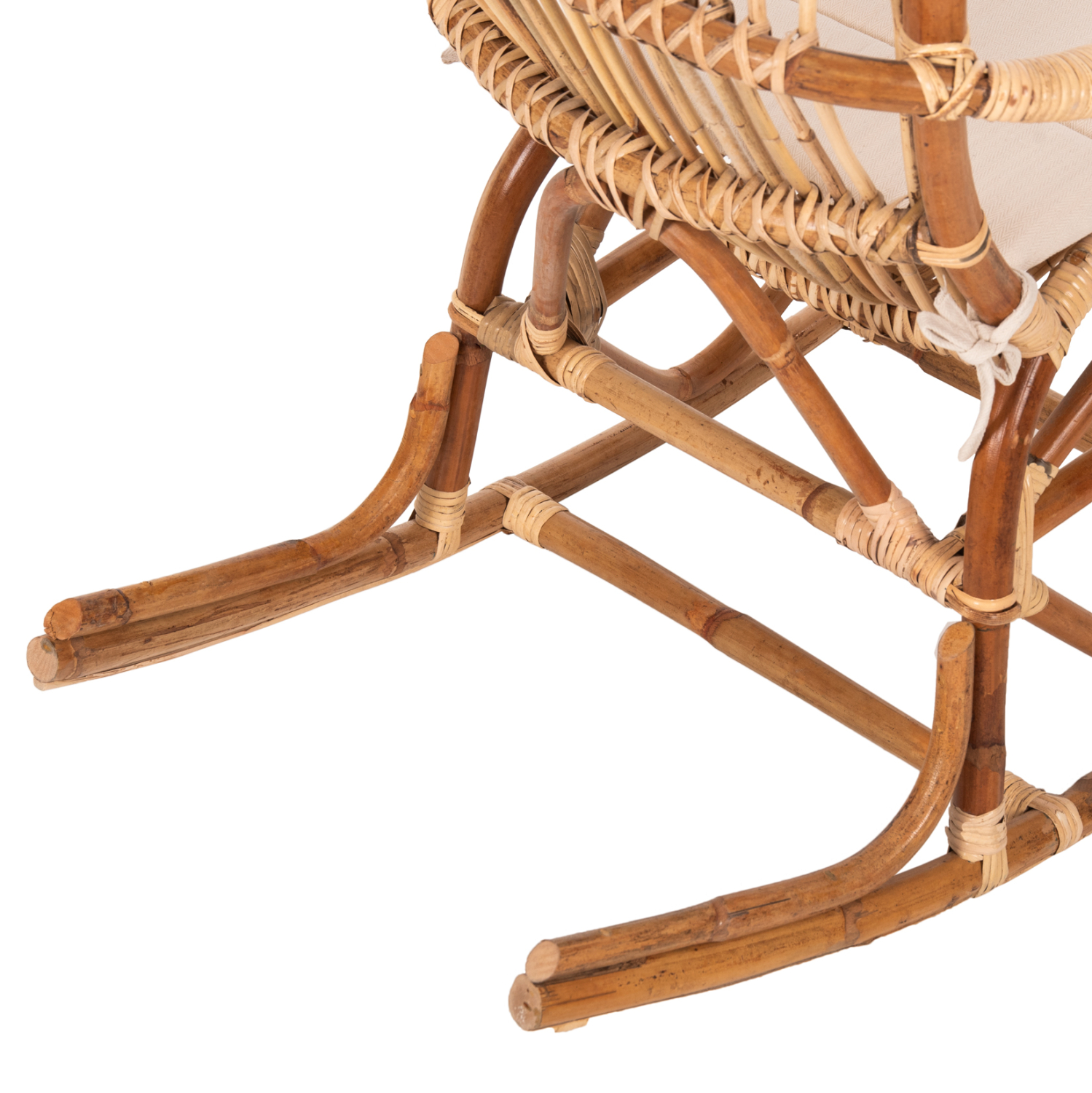 Ολόκληρη η πολυθρόνα είναι κατασκευασμένη από φυσικό Rattan με την φλούδα του. Το Rattan είναι το καλύτερο και το πιο ευρέως χρησιμοποιούμενο φυσικό υλικό για την κατασκευή επίπλων. Το Rattan που καλλιεργείται στην Ινδονησία είναι το ποιοτικότερο και ανθεκτικότερο υλικό από παρόμοια που καλλιεργούνται σε άλλες περιοχές. Το Rattan είναι ένα φυσικά αναπτυσσόμενο είδος αμπέλου που είναι εγγενές σε τροπικές περιοχές της Αυστραλίας, της Ασίας και της Αφρικής. Με περισσότερα από 600 διαφορετικά είδη, το RATTAN μπορεί να διακριθεί ως ένα ισχυρό ινώδες φυτό που μοιάζει με το μπαμπού και χρησιμοποιείται για έπιπλα επειδή είναι ελαφρύ, ανθεκτικό, εύκαμπτο και ελκυστικό.