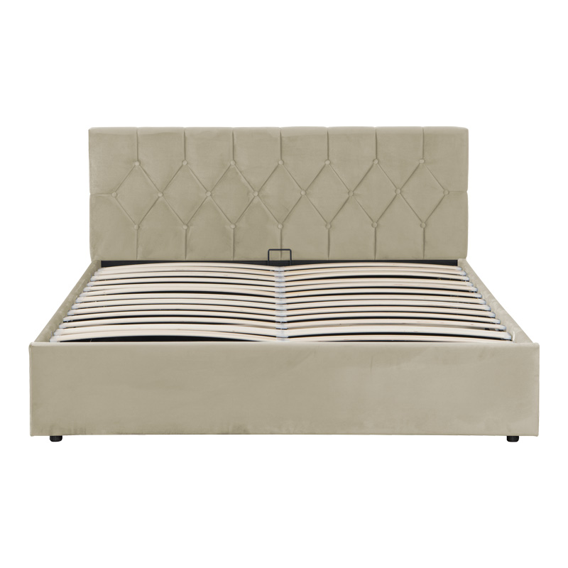 Κρεβάτι διπλό Kamaho pakoworld βελούδο κρεμ με αποθηκευτικό χώρο 160×200εκ