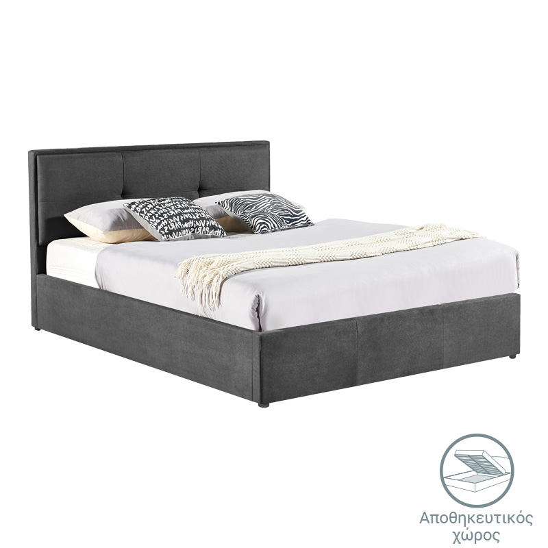 Κρεβάτι διπλό Sonnie pakoworld με αποθηκευτικό χώρο ύφασμα ανθρακί 150×200εκ