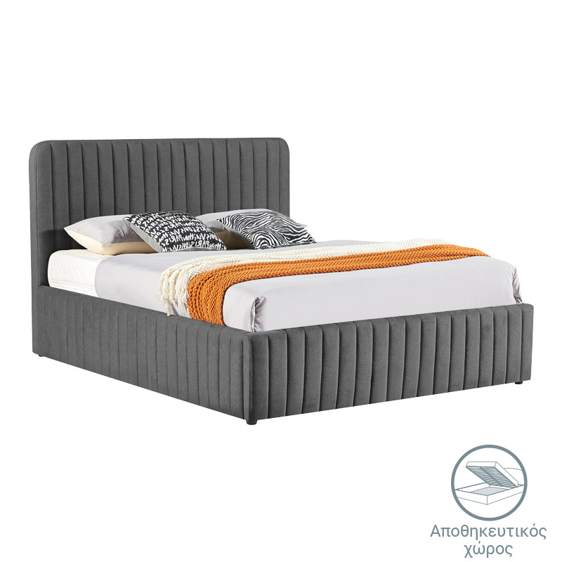 Κρεβάτι διπλό Zilin pakoworld ύφασμα ανθρακί με αποθηκευτικό χώρο 160×200εκ