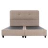 Το κρεβάτι DOLORES έχει ψηλό κεφαλάρι, και έχει διακόσμηση με 2 μόνο τρουκς (κουμπάκια), ενώ και όλη η επένδυση του κρεβατιού είναι από ανάγλυφο ύφασμα τύπου NUBUCK. Το ΜΠΕΖ χρώμα σε όλο το κρεβάτι είναι ουδέτερο και μπορεί να συνδυαστεί με πληθώρα διακοσμητικών μοτίβων. Όμως, το κύριο χαρακτηριστικό αυτού του κρεβατιού είναι ότι δεν ακολουθεί την κλασική κατασκευή με τις τάβλες του σομιέ για την στήριξη του στρώματος, αλλά αντίθετα αποτελείται από μια συνεχόμενη επιφάνεια πάνω στην οποία τοποθετείται το στρώμα! Σε διαστάσεις διπλού στρώματος 150×200 εκ.