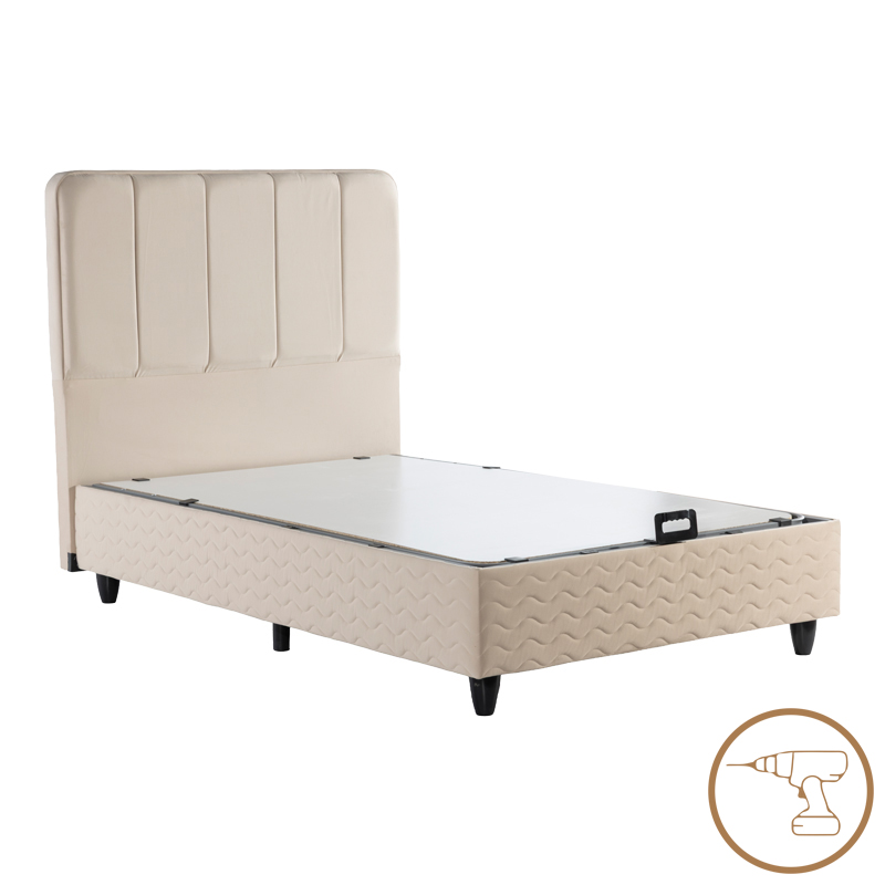 Κρεβάτι ημίδιπλο Lunda pakoworld με αποθηκευτικό χώρο κρεμ βελούδο 120×200εκ