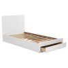 Το κρεβάτι MELANY σε διάσταση για ημίδιπλο στρώμα 110×190 εκ, είναι μια άριστης ποιότητας, κλασική και ασφαλής επιλογή που θα ταιριάξει σε κάθε υπνοδωμάτιο. Το χαρακτηριστικό του είναι ότι πατάει απευθείας στο δάπεδο και εκμεταλλεύεται τον χώρο κάτω από τις τάβλες του σομιέ με 1 μεγάλο συρτάρι που βγαίνει από την πλευρά του «ποδαρικού» (η επιφάνεια απέναντι από το κεφαλάρι). Όλες οι γωνίες είναι τετραγωνισμένες χωρίς καμία καμπύλη, ενώ o ΛΕΥΚΟΣ χρωματισμός είναι ευχάριστος και ουδέτερος, και μπορεί να συνδυαστεί με πληθώρα διακοσμητικών μοτίβων στον χώρο σας.