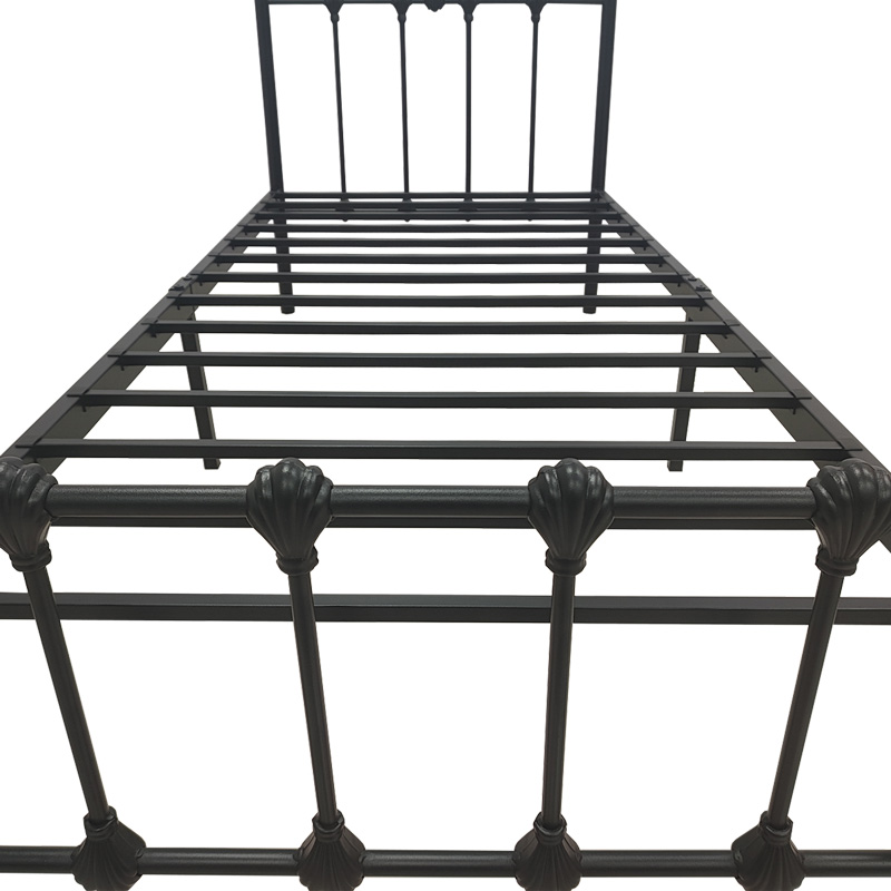 • Κατασκευασμένο από υψηλής ποιότητας μέταλλο με ανθεκτικό μαύρο ματ φινίρισμα, αυτό το κρεβάτι είναι σχεδιασμένο για μακροχρόνια χρήση και εύκολη συντήρηση.