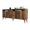 Ο μπουφές ΗΜ9431.04 είναι ένα επιβλητικό έπιπλο όπου κι αν τον τοποθετήσετε. Έχει ψηλά και πλαγιαστά πόδια σε καρυδί απόχρωση και δύο μεγάλα ντουλάπια με ράφι, που ανοίγουν με διπλές πόρτες. Ακριβώς επάνω από τα ντουλάπια και κάτω από την επάνω επιφάνεια υπάρχει ανοιχτός χώρος αποθήκευσης. Το μήκος του εξασφαλίζει ότι η επιφάνεια του είναι μεγάλη και αρκετή για τοποθέτηση πολλών αντικειμένων. Το χρώμα όλης της κατασκευής είναι καρυδί. Ο μπουφές αυτός θα σας ενθουσιάσει! Τι είναι όμως ο μπουφές; Ο μπουφές είναι ένα άκρως πρακτικό έπιπλο, αφού στους αποθηκευτικούς του χώρους μπορούμε να βάλουμε από σερβίτσια πιάτων και ποτήρια, μέχρι κεριά και διάφορα άλλα χρηστικά αντικείμενα που έχουμε στο σπίτι μας, ώστε να είναι τακτοποιημένα και να μη δημιουργούν ακαταστασία στο χώρο.