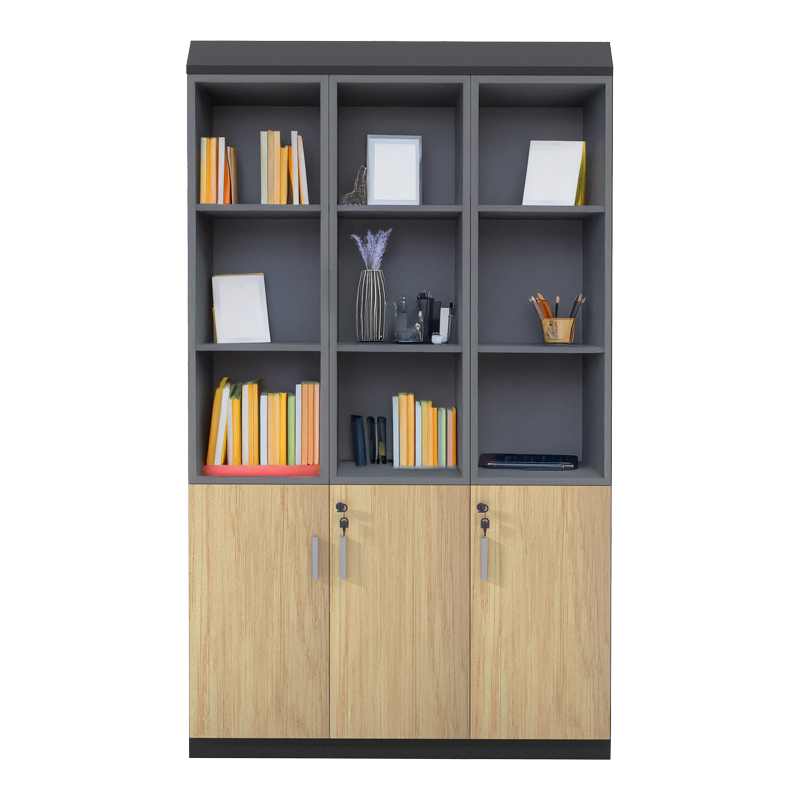 Ντουλάπα γραφείου με γυάλινες πόρτες Lotus pakoworld χρώμα φυσικό – ανθρακί 120x40x200εκ