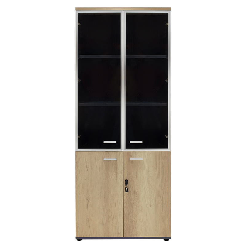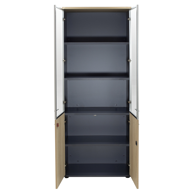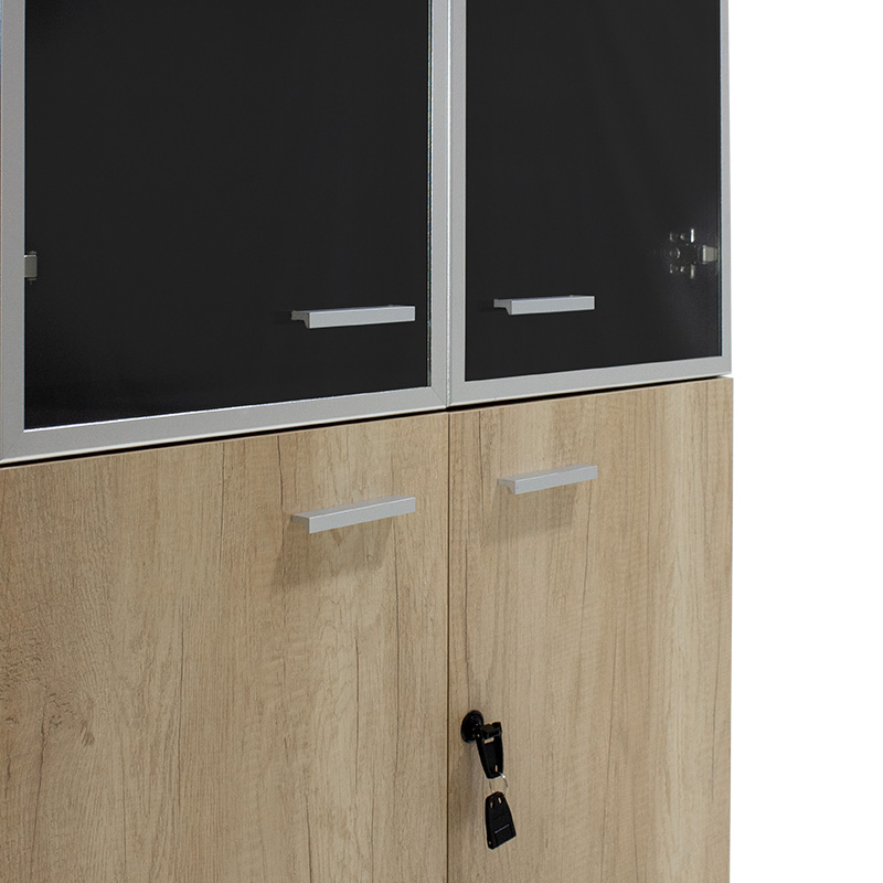 Ντουλάπα γραφείου με γυάλινες πόρτες Lotus pakoworld χρώμα φυσικό – ανθρακί 80x40x200εκ