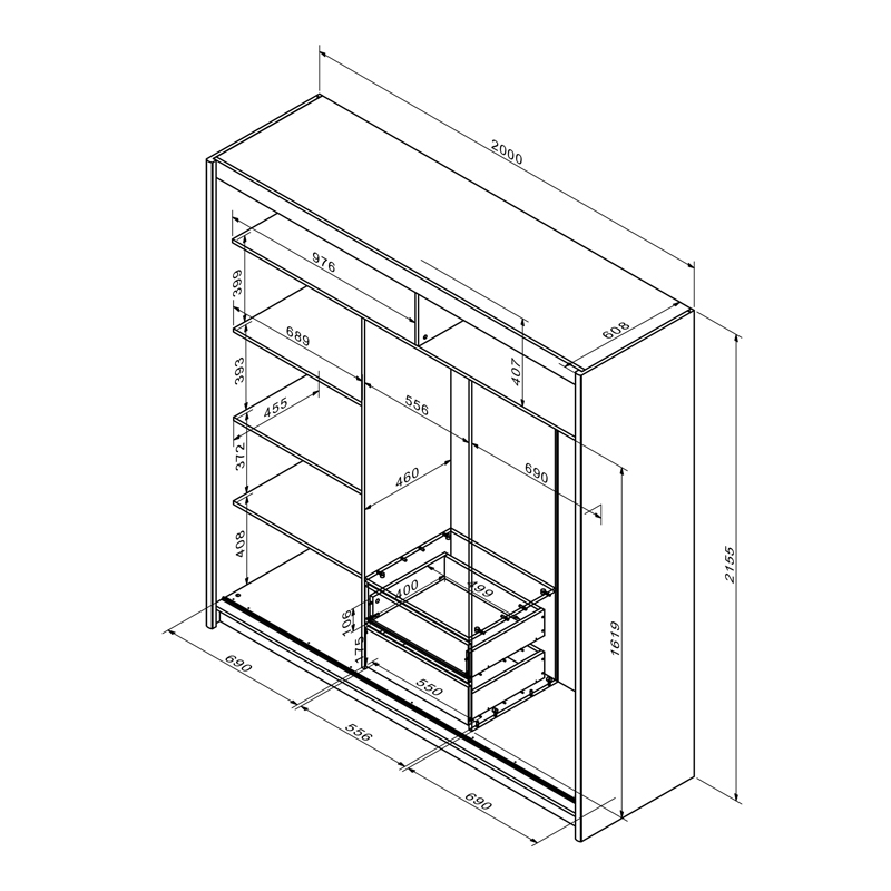 - Στο εσωτερικό περιλαμβάνει μία βέργα για κρεμάστρες και πέντε ράφια, δυο συρτάρια για κλειστή αποθήκευση των αντικειμένων σας καθώς διαθέτει και πατάρι.