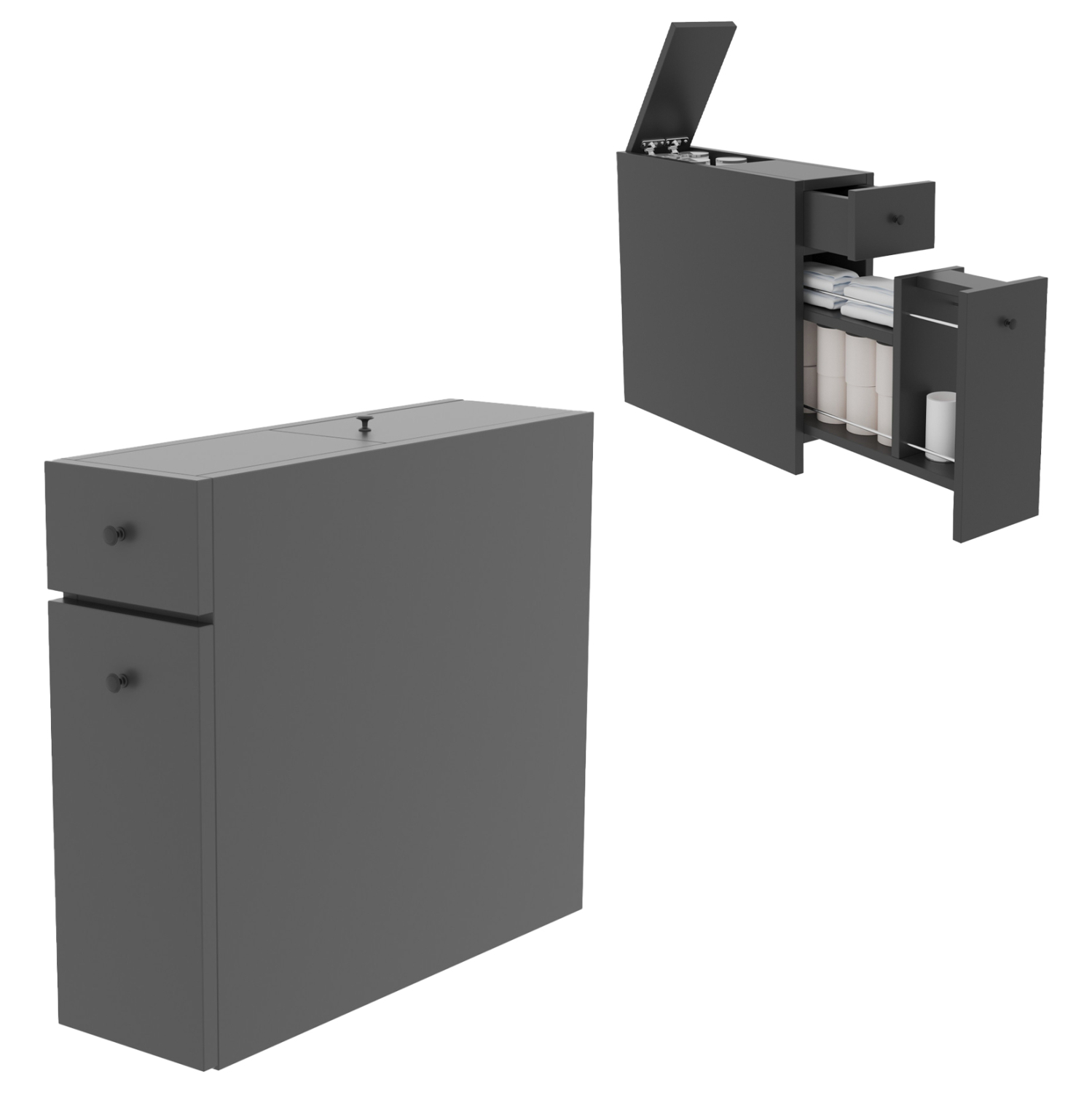 ΗΜ9424.01- Ντουλάπι πολλαπλών χρήσεων—-Σας παρουσιάζουμε το καινούριο έπιπλο για τον χώρο του μπάνιου σε όμορφο ανθρακί χρώμα. Είναι ένα μονοκόμματο έπιπλο στενό και κοντό, με ένα συρτάρι ψηλό και βαθύ στο κάτω μέρος και ένα συρτάρι μικρό από πάνω. Επίσης, διαθέτει κι έναν αποθηκευτικό χώρο πίσω από το μικρό συρτάρι που ανοίγει από πάνω με πορτάκι. Πρόκειται για ένα πρακτικό έπιπλο που θα σας λύσει τα χέρια τόσο με τους αποθηκευτικούς χώρους που διαθέτει, όσο και με τις βολικές του διαστάσεις.