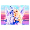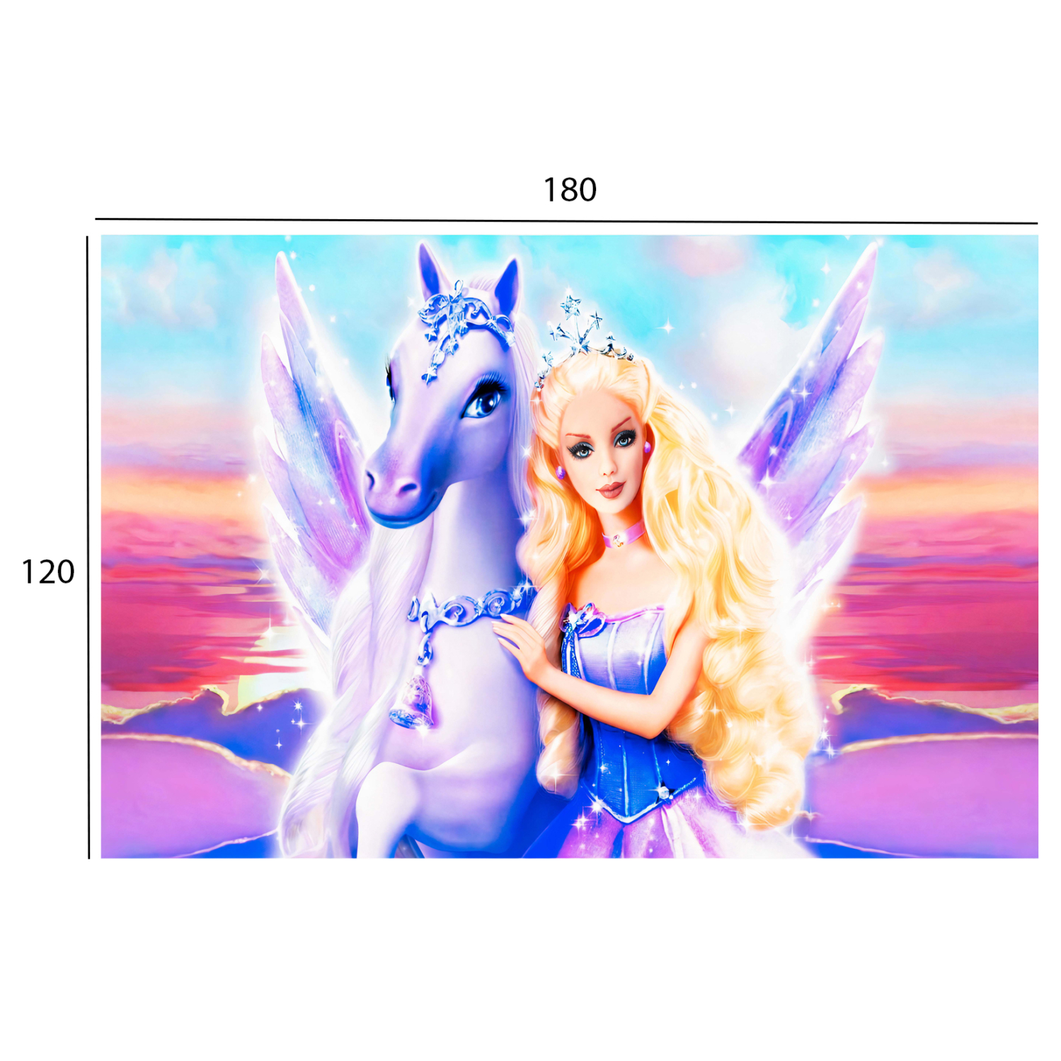 Αυτό το όμορφο χαλί για κορίτσια έχει κυρίαρχo χρώμα το ΡΟΖ και δεν διαθέτει μπορντούρα. Όλο το χαλί είναι μια πανέμορφη εικόνα της δημοφιλούς ξανθιάς κούκλας με το άσπρο γαλανομάτικο φτερωτό άλογό της, να λάμπει «λουσμένη» στην «αστερόσκονη». Άλλωστε, τι άλλο θέλει ένα παιδί για να βάλει την φαντασία του να δουλέψει;