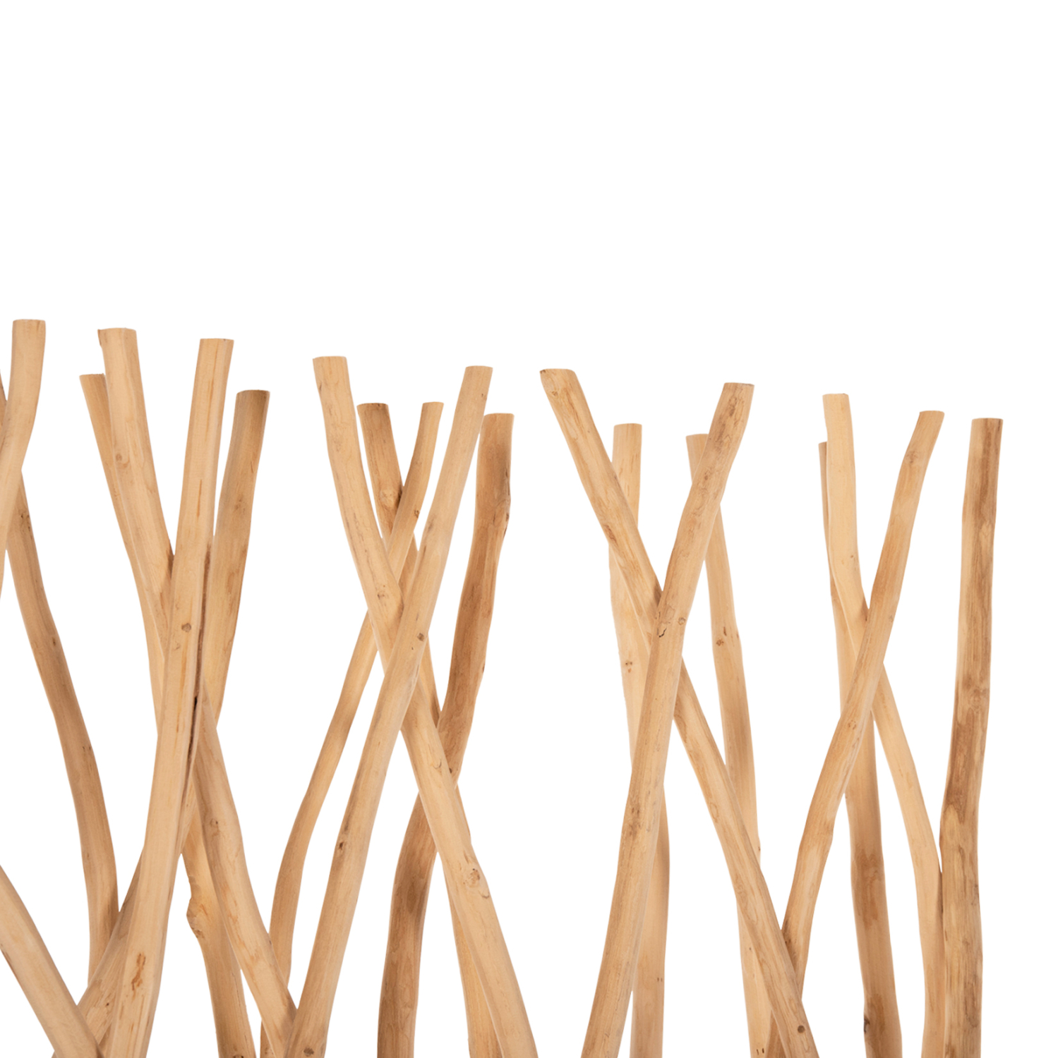 Το παραβάν έχει γίνει από φυσικά μασίφ κλαδιά του δέντρου ΤΕΑΚ. Όταν αναφερόμαστε σε μασίφ, εννοούμε τα ξύλα που κατασκευάζονται ολοκληρωτικά από τον κορμό δέντρου. Το μασίφ είναι η πιο ακριβή επιλογή σε είδος ξύλου αλλά ξεχωρίζει για την διαχρονική αισθητική του.