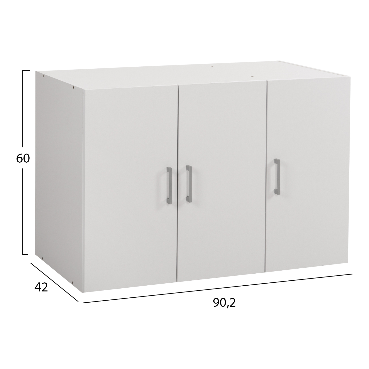 ΗΜ351.05—-Το ALIVIA είναι ένα πατάρι για 3-φυλλη ντουλάπα. Πρόκειται για ένα πρακτικότατο συμπλήρωμα που έχει φτιαχτεί με γνώμονα την όσο το δυνατόν καλύτερη εκμετάλλευση του χώρου. Οι διαστάσεις είναι ικανοποιητικές και είναι χωρισμένο σε δύο διαμερίσματα. Η μία πλευρά είναι μεγαλύτερη και κλείνει με δύο πόρτες ενώ η μικρότερη πλευρά κλείνει με μία πόρτα. Και οι 3 πόρτες έχουν κάθετα μεταλλικά χερούλια, ενώ το εσωτερικό των διαμερισμάτων είναι κενό. Δεν διαθέτουν ράφια ή κάτι άλλο και ενδείκνυνται για αποθήκευση ογκωδών αντικειμένων. Το πατάρι είναι κατασκευασμένο από μελαμίνη σε ΛΕΥΚΟ χρώμα και εσείς πρέπει απλά να το ταιριάξετε με την υπάρχουσα ντουλάπα σας, τόσο χρωματικά, όσο και από πλευράς διαστάσεων.