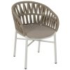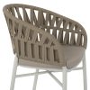 Η πολυθρόνα HM5857.02 είναι όμορφη! Μοντέρνα, άνετη και σταθερή! Η διχρωμία του ΛΕΥΚΟΥ σκελετού με την ΜΠΕΖ επένδυση από σχοινί σε όλη την πλάτη είναι μοναδική. Η πλάτη με τα μπράτσα αποτελούν ένα ενιαίο ημικυκλικό κομμάτι με μια δοκό που ακολουθεί το σχέδιο και είναι πλεγμένη με σχοινί και αγκαλιάζει το σώμα, ενώ η κλίση στα μπράτσα είναι χαρακτηριστική. Το μαξιλάρι του καθίσματος είναι και αυτό σε μπεζ χρώμα και είναι άνετο. Η πολυθρόνα αυτή θα αναβαθμίσει αισθητικά τον χώρο που θα την τοποθετήσετε και θα τραβήξει τα βλέμματα χάρη στα υλικά κατασκευής της. Επίσης, το γεγονός ότι είναι στοιβαζόμενη την κάνει ιδιαιτέρως πρακτική αφού μπορείτε να την αποθηκεύσετε στον μικρότερο δυνατό χώρο.