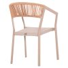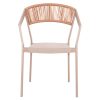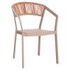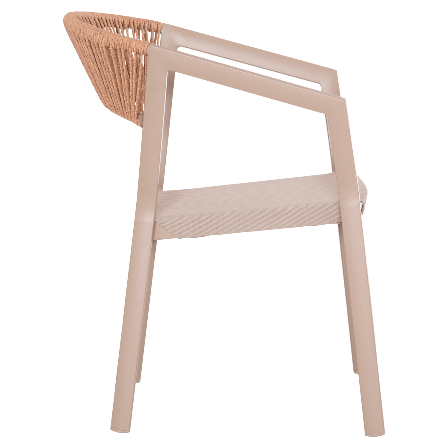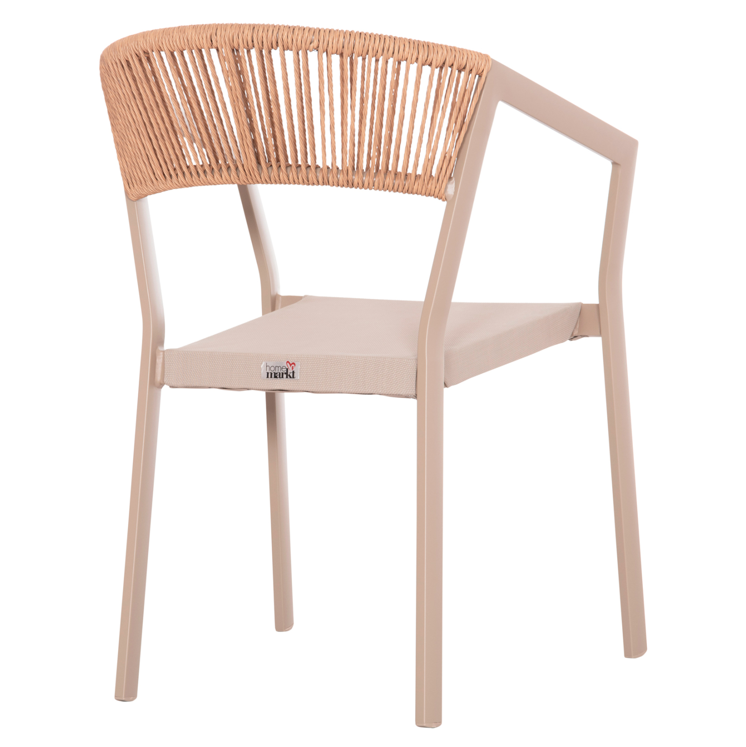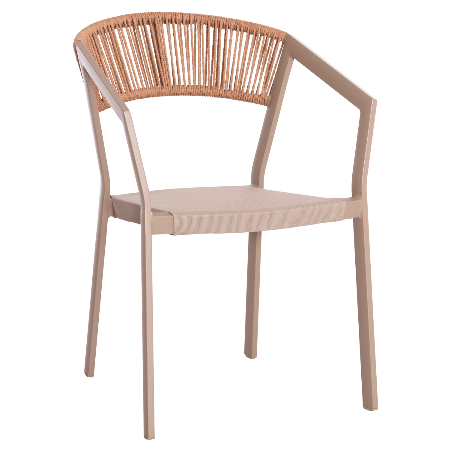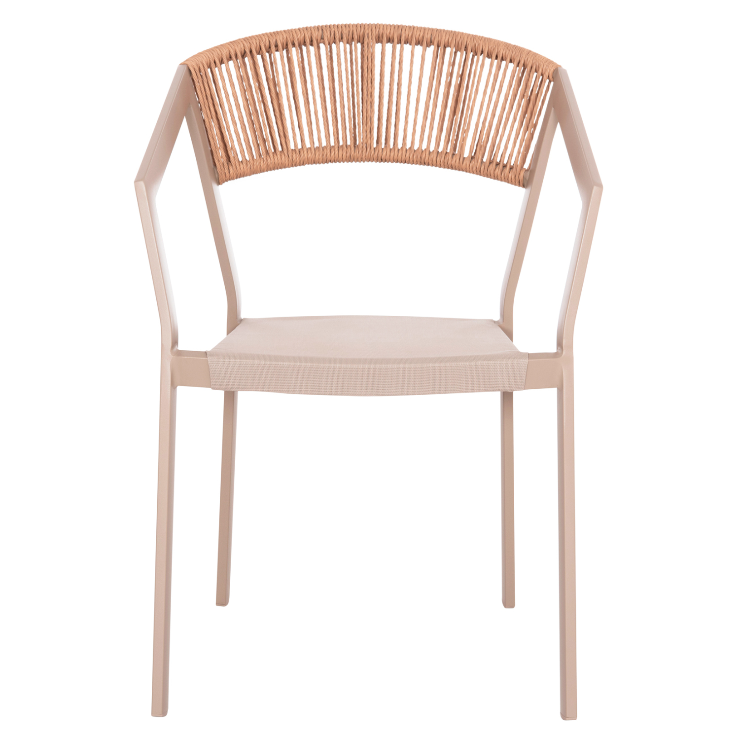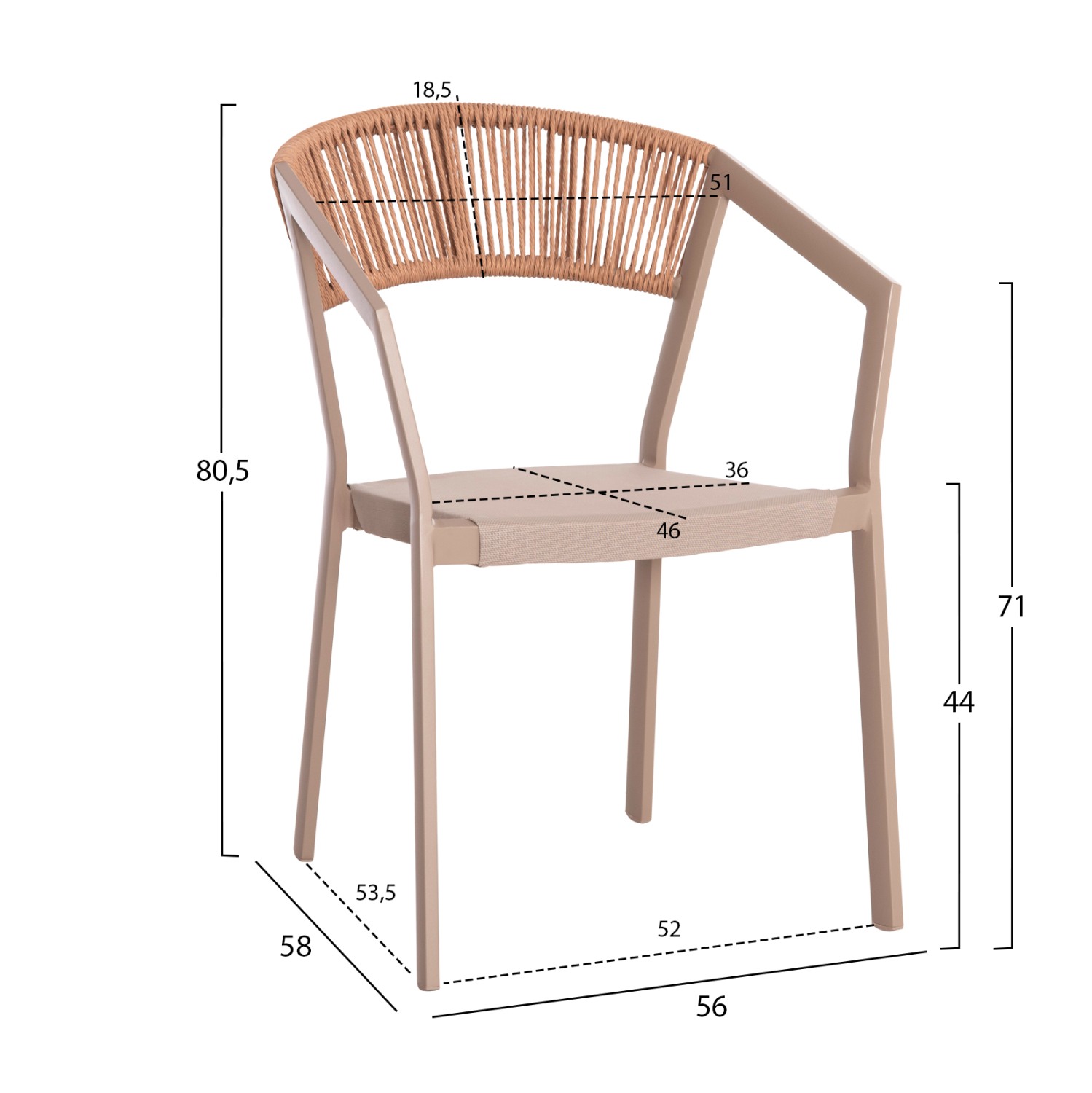 Η πλάτη της πολυθρόνας είναι επενδυμένη με πολυεστερικό RATTAN. Στα περισσότερα έπιπλα κήπου και γενικά σε έπιπλα για εξωτερικούς χώρους χρησιμοποιείται συνθετικό υλικό από PVC, δηλαδή τεχνητές ίνες υψηλής ποιότητας. Αυτό δίνει στην κατασκευή εξαιρετική αντοχή και ανθεκτικότητα σε ακραίες συνθήκες ζέστης ή κρύου.