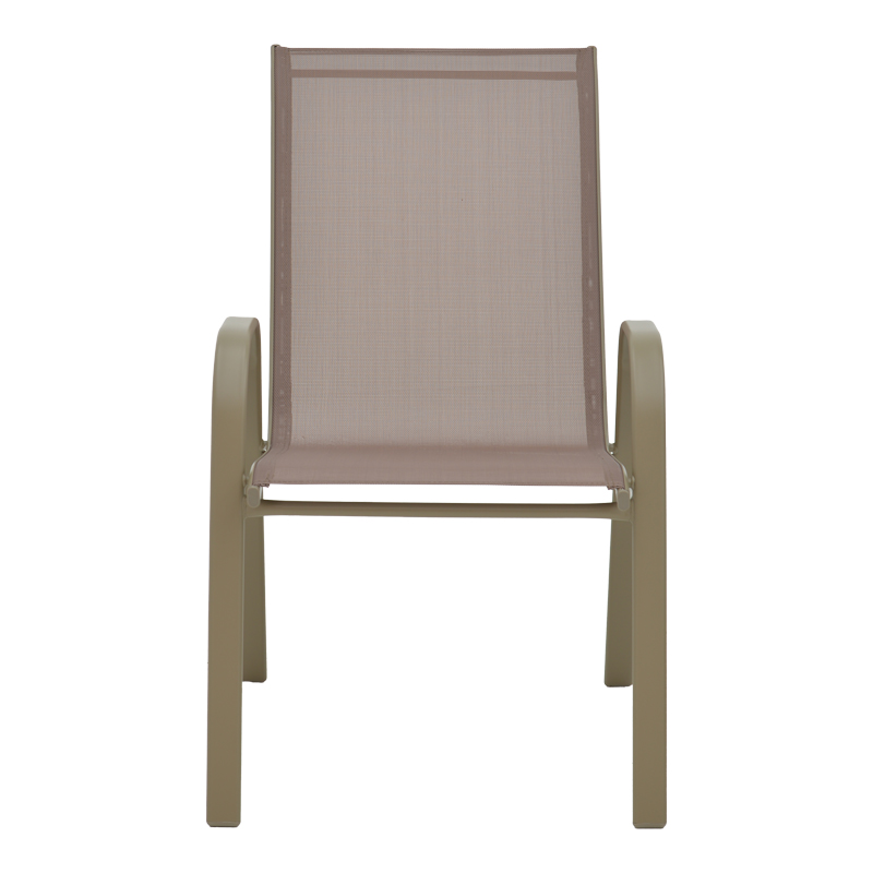 - Σταθερός σκελετός από μέταλλο με αντοχή στην καταπόνηση και στη φθορά. Κυρίως σώμα καρέκλας από εξαιρετικής ποιότητας textilene. Το textilene είναι ύφασμα μεγάλης αντοχής στην ηλιακή ακτινοβολία και την υγρασία ενώ παράλληλα αφήνει το δέρμα να “αναπνέει” δημιουργώντας έτσι άνεση στο κάθισμα.