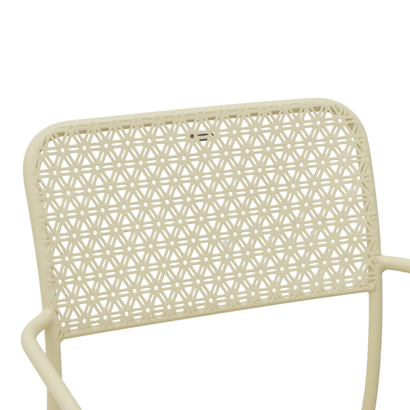 - Διάτρητο σχέδιο πλάτης και έδρας που προσδίδει μια αέρινη, ανάλαφρη όψη. Αυτό το στυλ επιτρέπει στον αέρα να κυκλοφορεί ελεύθερα, ενώ ταυτόχρονα προσφέρει μια εκλεπτυσμένη, γλυπτική παρουσία στον κήπο σας.
