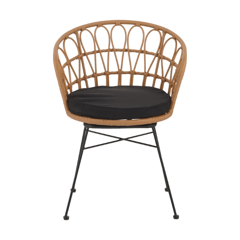 Πολυθρόνα Felicia pakoworld rattan φυσικό-μεταλλικό μαύρο πόδι Φ60×81εκ