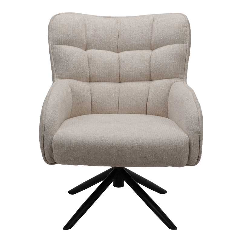 Πολυθρόνα Fremilia pakoworld περιστρεφόμενη γκρι-μπεζ ύφασμα με μαύρη μεταλλική βάση 75x80x94εκ