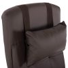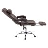 ΗΜ1057.19–Διευθυντική καρέκλα γραφείου σε ΚΑΦΕ χρώμα. Μια «πλούσια» και επιβλητική καρέκλα γραφείου με αναπαυτικά μπράτσα με εργονομική κλίση επενδυμένα με μαξιλαράκια. Η πλάτη είναι πολύ ψηλή ενώ έχει πλούσια στρώση από αφρώδη υλικά και έξτρα μαξιλαράκι στο επάνω μέρος της πλάτης για μεγαλύτερη άνεση κατά την χρήση. Υποστηρίζει ολόκληρο τον κορμό σας, ενώ είναι επενδυμένη με υψηλής ποιότητας PU δέρμα με καπιτονέ τεχνοτροπία, όπως επίσης και το φαρδύ και αναπαυτικό κάθισμα με την εξτρά αναπαυτική επιφάνεια. Η βάση είναι χρωμιωμένη σε σχήμα «αστέρι» με κυρτά πόδια και ασπρόμαυρα ροδάκια. Το χαρακτηριστικό, όμως, που κάνει αυτή την καρέκλα να ξεχωρίζει είναι ότι διαθέτει πτυσσόμενο υποπόδιο, το οποίο σε συνδυασμό με το γεγονός ότι η πλάτη «πέφτει» με μεγάλη κλίση, σας επιτρέπει να ξαπλώνετε και να ξεκουράζεστε όταν το επιθυμείτε!