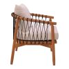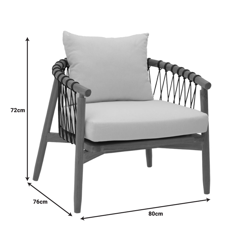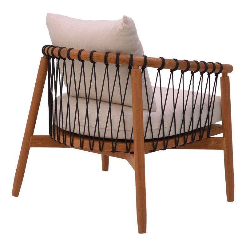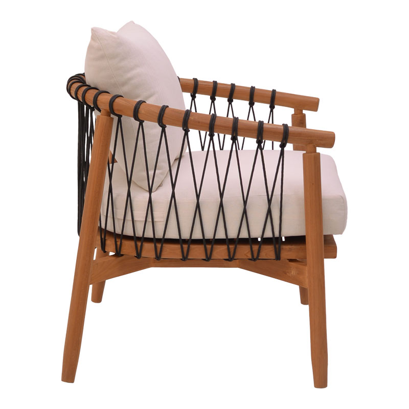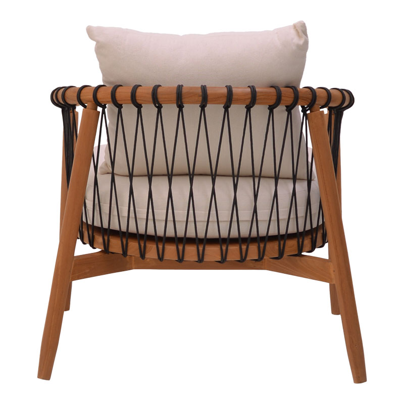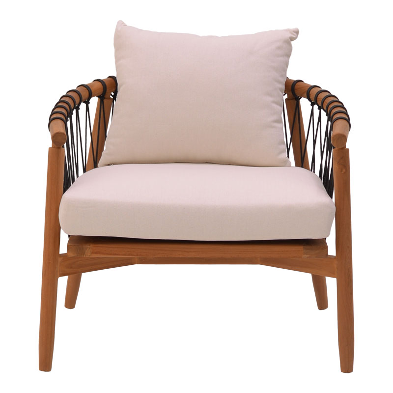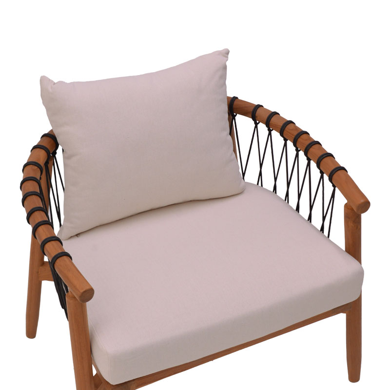 Πολυθρόνα Haribo pakoworld φυσικό teak ξύλο-μαύρο σχοινί-λευκο μαξιλάρι 80x76x72εκ