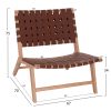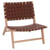 Η πολυθρόνα εσωτερικού χώρου FELIPE είναι μια κοντή και φαρδιά πολυθρόνα χωρίς μπράτσα απαράμιλλης ομορφιάς. Ο πανέμορφος σκελετός της είναι από ποιοτικό ξύλο, ενώ τόσο η μεσαίου ύψους πλάτη όσο και το φαρδύ κάθισμα αποτελούνται από τετραγωνισμένα πλεγμένο PU δέρμα άριστης ποιότητας. Οι σχεδιαστικές γραμμές της πολυθρόνας είναι κομψές και με γνώμονα την άνεση του χρήστη, με χαρακτηριστικό παράδειγμα το κοντό κάθισμα με την έντονη κλίση και την πλάτη με την επίσης χαρακτηριστική κλίση προς τα πίσω. Το ξύλο έχει το φυσικό του χρώμα που μπορεί άνετα να συνδυαστεί με διάφορα διακοσμητικά μοτίβα ενώ το PU δέρμα είναι ΚΑΦΕ. Η πολυθρόνα θα αποτελέσει το κέντρο ενδιαφέροντος οπουδήποτε και αν τοποθετηθεί, είτε σε χώρους εστίασης, είτε σε lounge bars, είτε σε ξενοδοχεία, ακόμα και στο σπίτι.