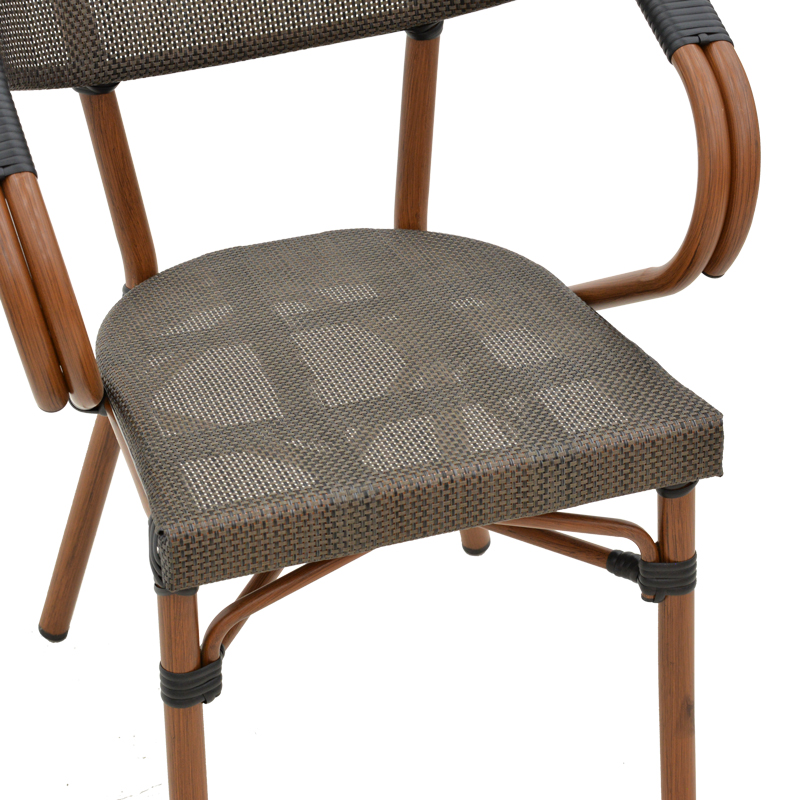 * Επένδυση καθίσματος με εξαιρετικής ποιότητας ύφασμα textilene. Το textilene είναι πλενόμενο και ανθεκτικό στις συνθήκες του εξωτερικού πέριβάλλοντος (ηλιακή ακτινοβολία, υγρασία).