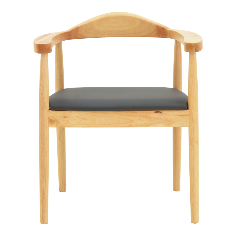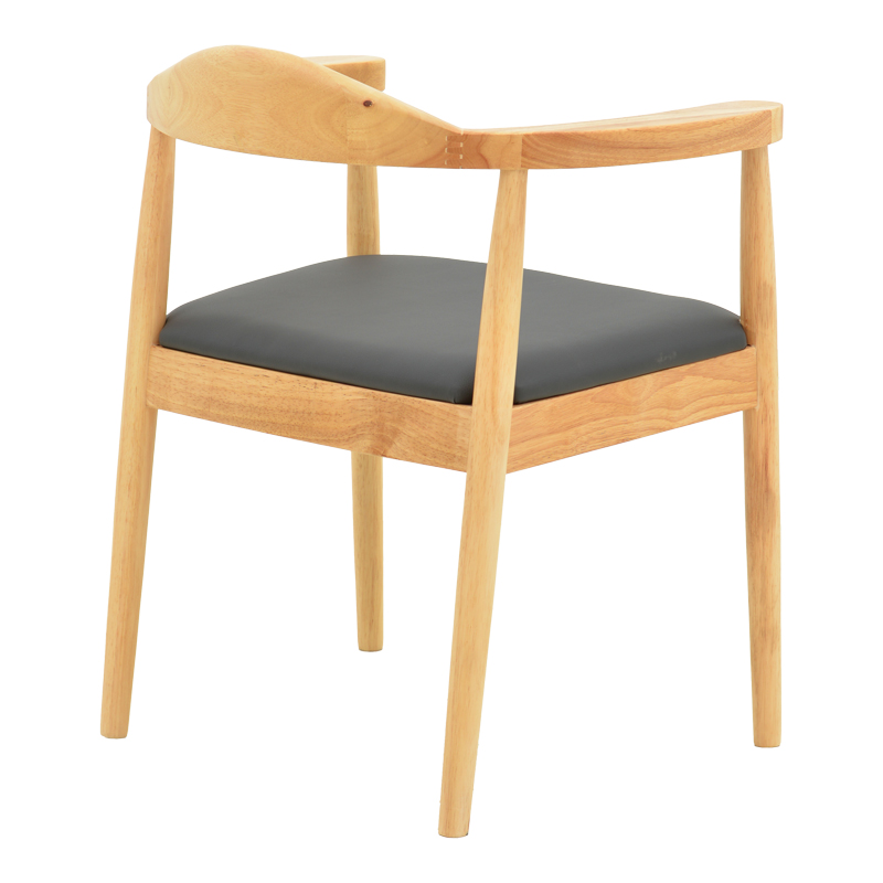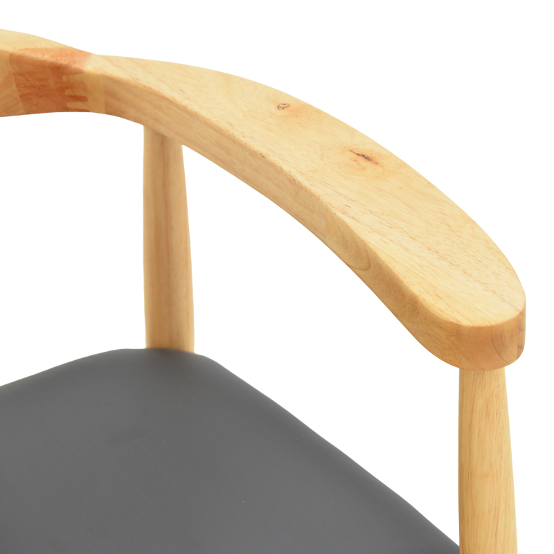 Πολυθρόνα Joube pakoworld rubberwood σε φυσική απόχρωση με μαύρο pu μαξιλάρι 59x48x73εκ