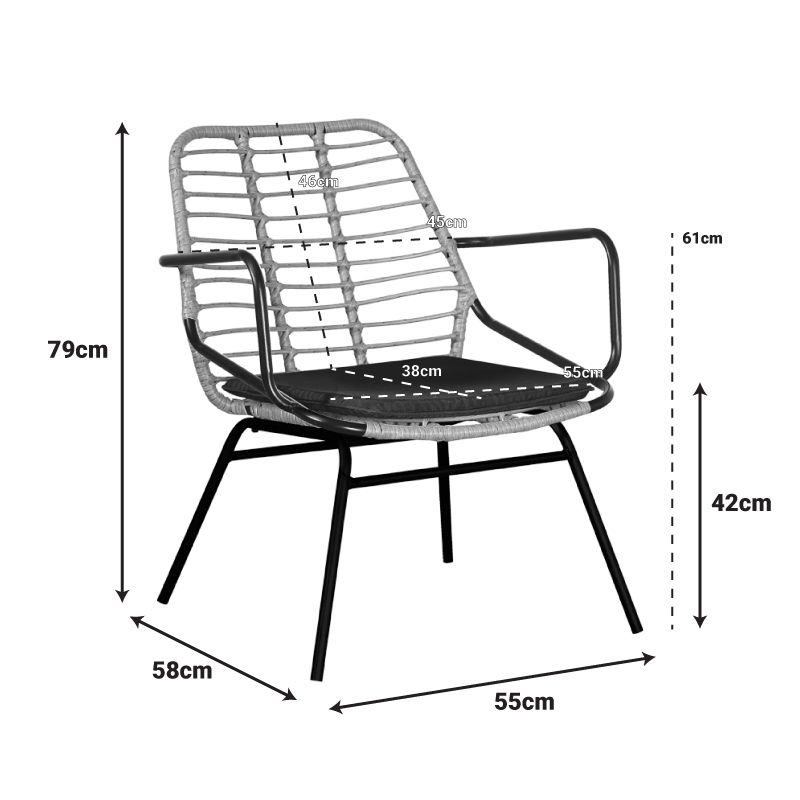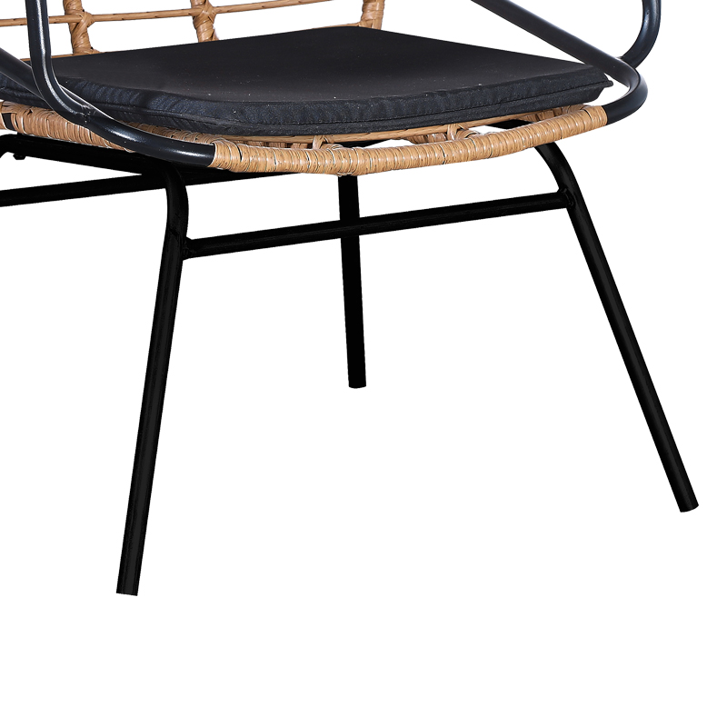 Πολυθρόνα κήπου Naoki pakoworld με μαξιλάρι pe φυσικό-μέταλλο μαύρο πόδι 58x63x81εκ