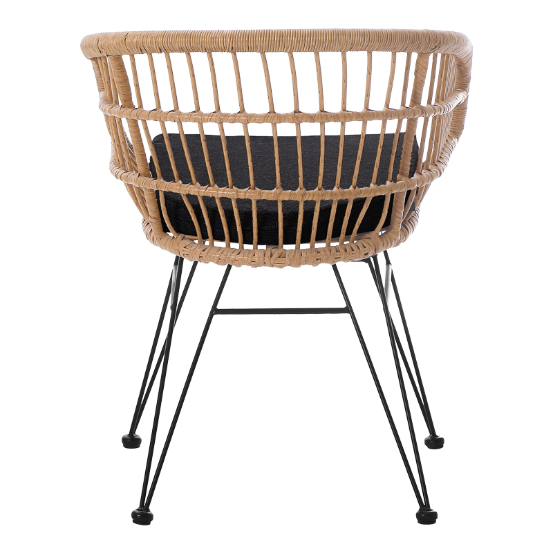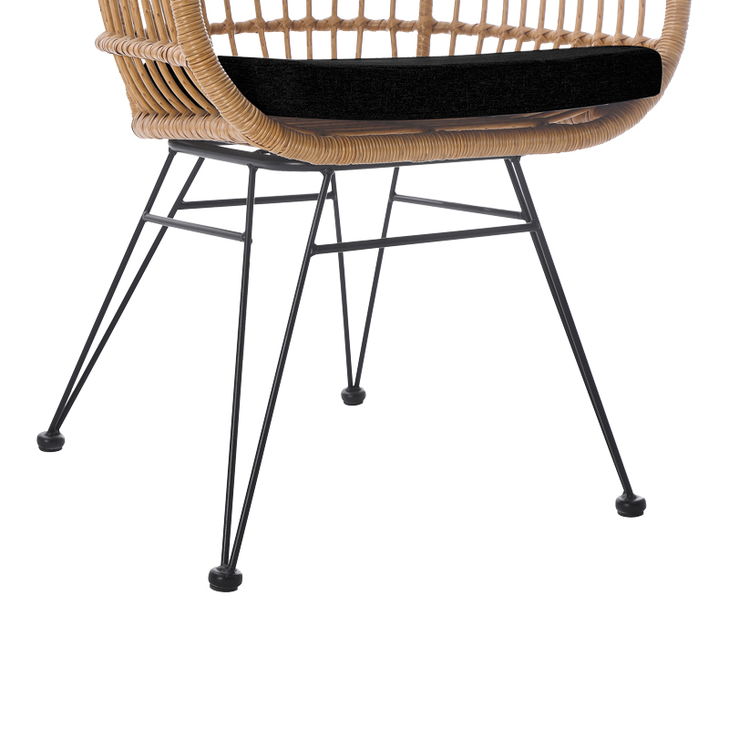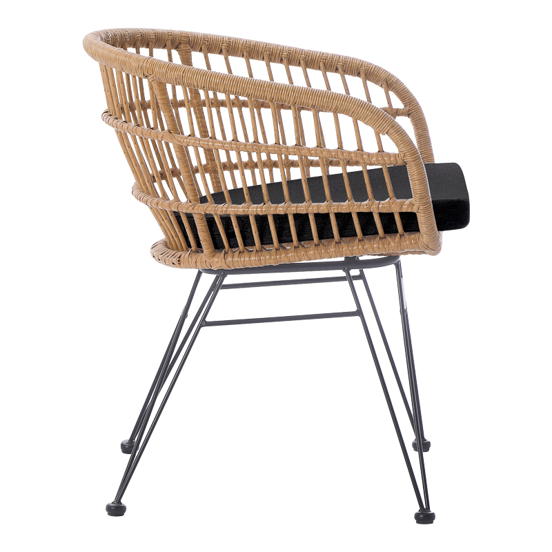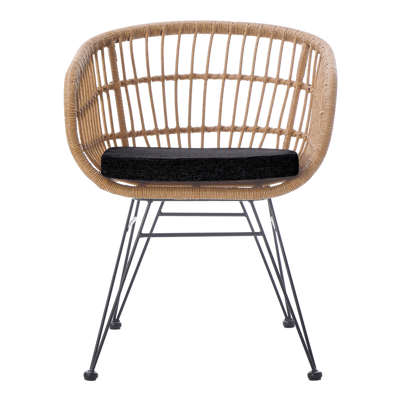 Πολυθρόνα Naoki pakoworld με μαξιλάρι pe rattan σε φυσική απόχρωση και μαύρα μεταλλικά πόδια 63x61x79εκ