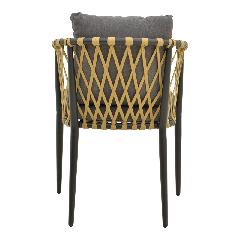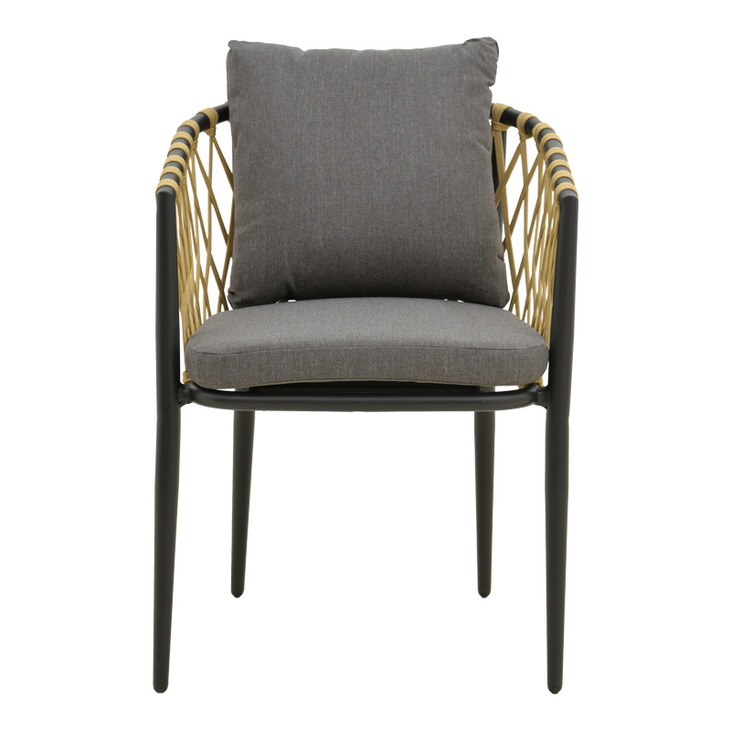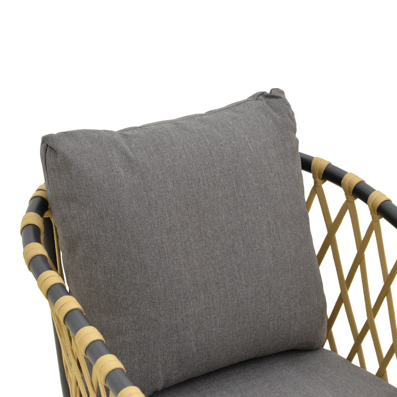 Πολυθρόνα Peluxe pakoworld αλουμίνιο ανθρακί-pe σχοινί φυσικό-μαξιλάρια γκρι 54x62x84εκ
