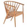 Η πολυθρόνα PERMAINE είναι ξεχωριστή. Ο σκελετός της είναι από ποιοτικό ξύλο teak κι έχει ημικυκλικό σχήμα στην πλάτη και στο κάθισμα. Το χαρακτηριστικό της πλάτης είναι ότι αποτελείται από όμορφη διάταξη των ξύλων, ενώ το κάθισμα έχει γίνει με πλεκτό συνθετικό σχοινί. Το ξύλο έχει φυσικό χρώμα που μπορεί άνετα να συνδυαστεί με διάφορα διακοσμητικά μοτίβα. Μια πολυθρόνα που με ένα ταιριαστό τραπέζι μπορεί να απογειώσει κάθε χώρο που θα τοποθετηθεί.