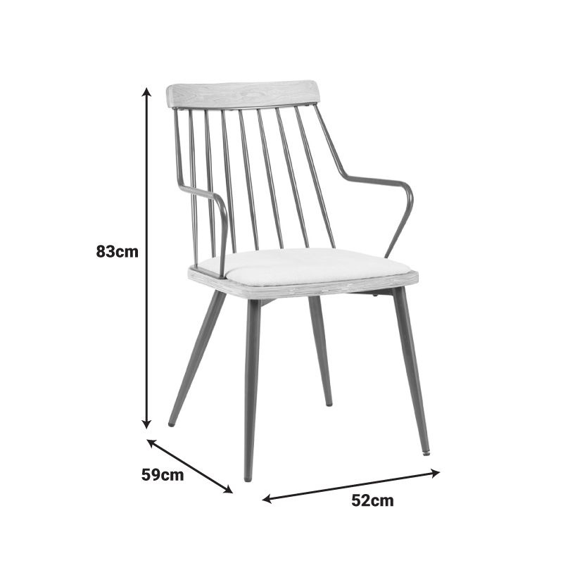 Πολυθρόνα Posse pakoworld μέταλλο μπρονζέ-white wash ξύλο-μπεζ ύφασμα 52x59x83εκ