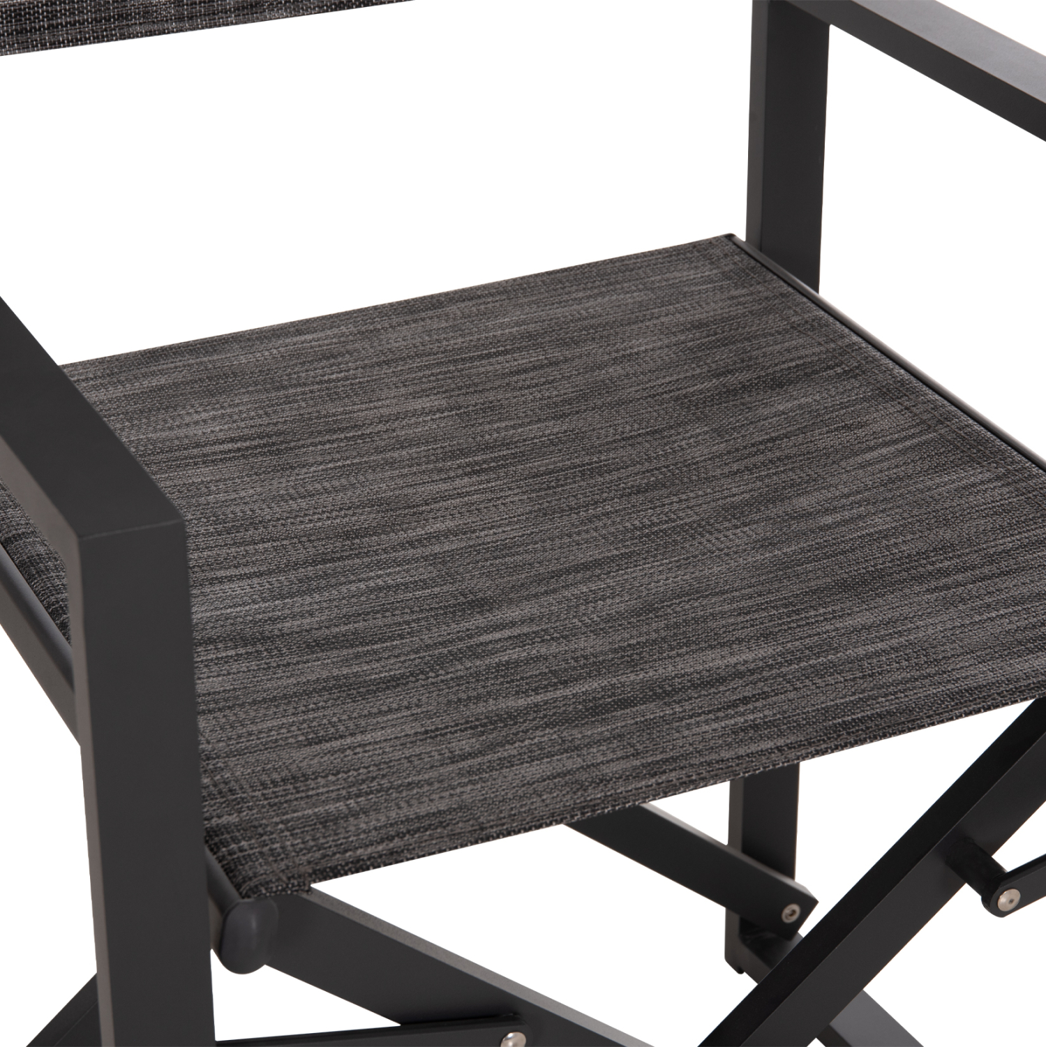 Η επένδυση της πολυθρόνας έχει γίνει με αδιάβροχο ενισχυμένο ύφασμα textilene 2×1. Αυτό είναι ένα παχύ, ισχυρό και ανθεκτικό πολυεστερικό ύφασμα. Σημαίνει ότι είναι κατασκευασμένο από πολυεστερικά νήματα υφασμένα από άκρη σε άκρη, και είναι επικαλυμμένο με PVC.