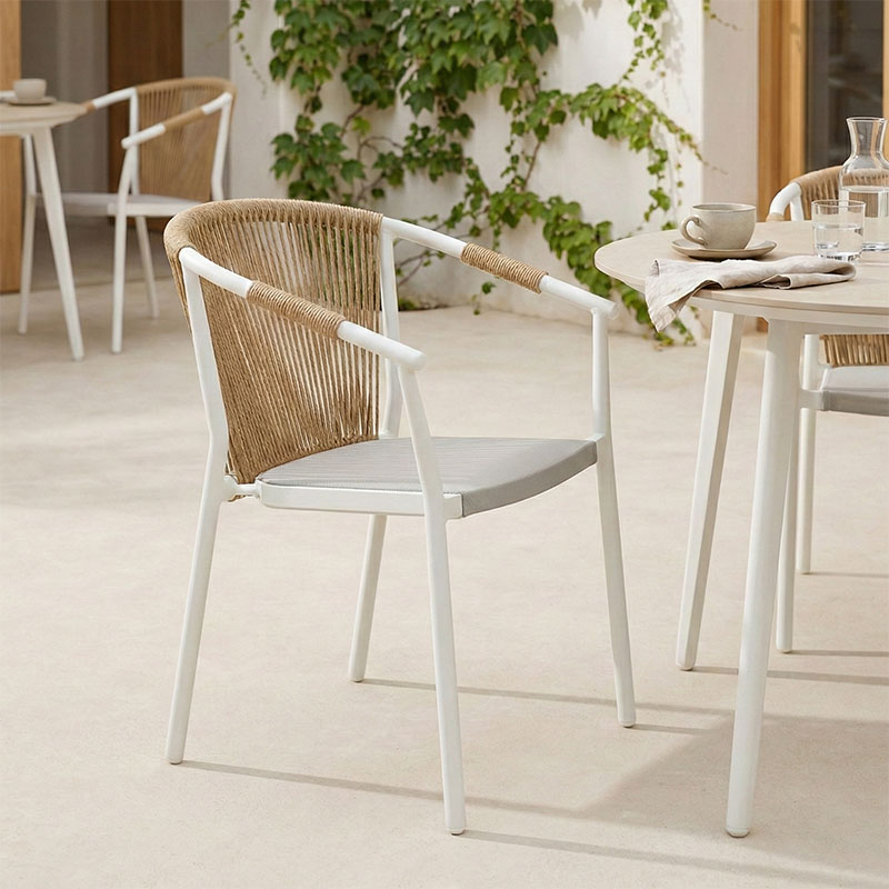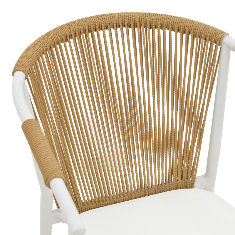 - Πλάτη καρέκλας από εξαιρετικής ποιότητας ρατάν. Η κύρια ιδιότητα του ράταν είναι η ευελιξία του, καθώς μπορεί να πλεκτεί και να διαμορφωθεί εύκολα. Επίσης, είναι ανθεκτικό και αντέχει στις καιρικές συνθήκες, καθιστώντας το ιδανικό για επιπλέον εξωτερικούς χώρους.
