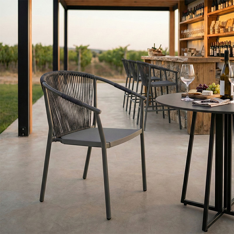 - Πλάτη καρέκλας από εξαιρετικής ποιότητας ρατάν. Η κύρια ιδιότητα του ράταν είναι η ευελιξία του, καθώς μπορεί να πλεκτεί και να διαμορφωθεί εύκολα. Επίσης, είναι ανθεκτικό και αντέχει στις καιρικές συνθήκες, καθιστώντας το ιδανικό για επιπλέον εξωτερικούς χώρους.