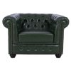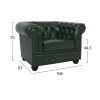 Η πολυθρόνα POLINA σε ΚΥΠΑΡΙΣΣΙ χρώμα με ξύλινα πόδια σε ΜΑΥΡΟ χρώμα είναι επιβλητική. Το χαρακτηριστικό που κάνει αυτή την πολυθρόνα να ξεχωρίζει είναι ότι η τεχνοτροπία της είναι σε στυλ Chesterfield, πράγμα που δίνει την αίσθηση κύρους και πολυτέλειας οπουδήποτε κι αν χρησιμοποιηθεί, ενώ η επένδυση με PU leather σε όλη την πολυθρόνα και η βαθιά καπιτονέ τεχνοτροπία τόσο στην κοντή πλάτη όσο και στα φαρδιά και γυριστά μπράτσα, υπηρετεί ακριβώς το στυλ Chesterfield.