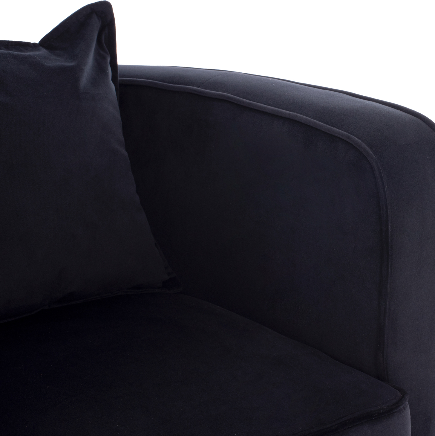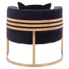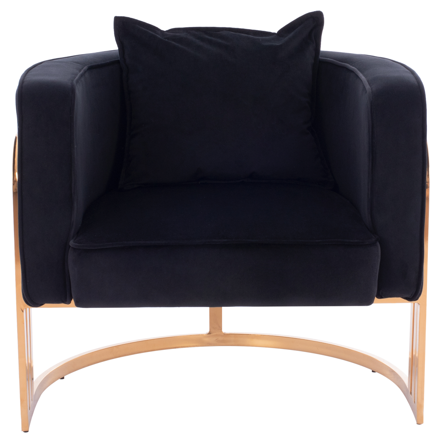 Η πολυθρόνα ΤΙΑΝΑ είναι μια πανέμορφη πολυθρόνα σε μαυρο χρώμα και μεταλλικό σκελετό σε χρυσό χρώμα. Ο σκελετός καταλήγει στα πόδια της πολυθρόνας που είναι σε ημικυκλική διάταξη βάσης με 3 κάθετα σταθερά πάνω στο μεταλλικό ημικύκλιο. Μια καρέκλα που δίνει κάτι το ξεχωριστό σε οποιοδήποτε επαγγελματικό χώρο. Ξεχωριστή, ποιοτική και κομψή σίγουρα θα τραβήξει τα βλέμματα. Η πλάτη είναι χαμηλή αλλά συνοδεύεται από ένα μαλακό μαξιλάρι, ενώ όλη η πολυθρόνα έχει βελούδινη επένδυση, πράγμα που επιτείνει τον ιδιαίτερο χαρακτήρα αυτής της πολυθρόνας.
