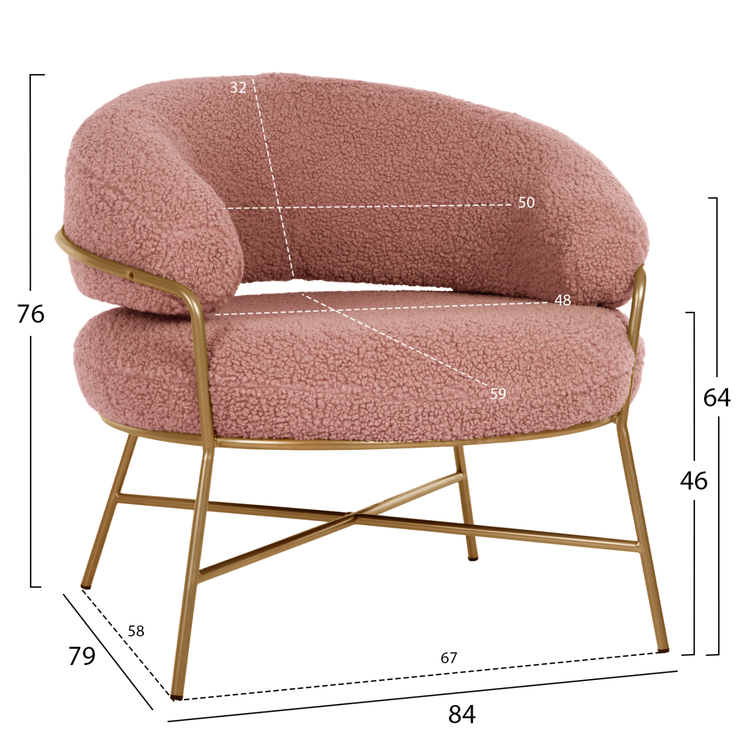 Η πολυθρόνα TRUDI σε ΣΑΠΙΟ ΜΗΛΟ χρώμα με μεταλλικό σκελετό ΧΡΥΣΟ, είναι πανέμορφη. Το χαρακτηριστικό που κάνει αυτή την πολυθρόνα να ξεχωρίζει είναι ότι είναι στρογγυλή με την πλάτη να είναι ξεχωριστή από το κάθισμα. Όλη η πολυθρόνα είναι επενδυμένη με εξαιρετικής ποιότητας ζεστό ΜΠΟΥΚΛΕ ύφασμα, πράγμα που την κάνει όμορφη και σημείο αναφοράς στο σαλόνι σας. Συνδυάζει στιλ και άνεση και μπορείτε να την τοποθετήσετε δίπλα στο τζάκι, σε ένα παράθυρο ή ακόμα και στο υπνοδωμάτιό σας, και να αφεθείτε στην «αγκαλιά» της.