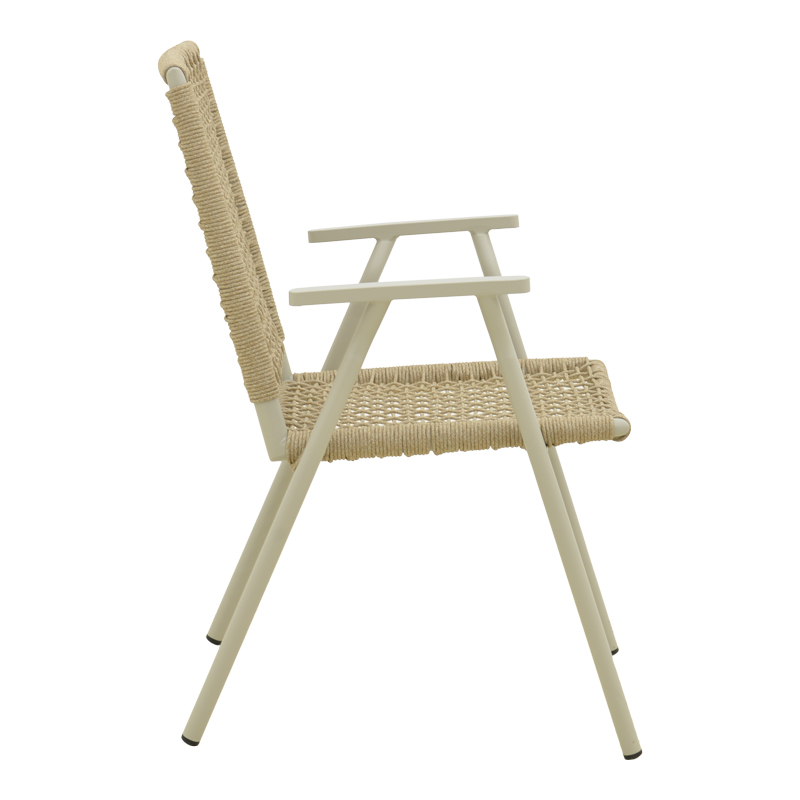 Πολυθρόνα Weave pakoworld στοιβαζόμενη αλουμίνιο σε μπεζ -pe σχοινί σε φυσική απόχρωση 57x63x86εκ