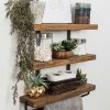 Ραφιέρα τοίχου Suny pakoworld μασίφ ξύλο πεύκου καρυδί-μαύρο 75x9x68εκ