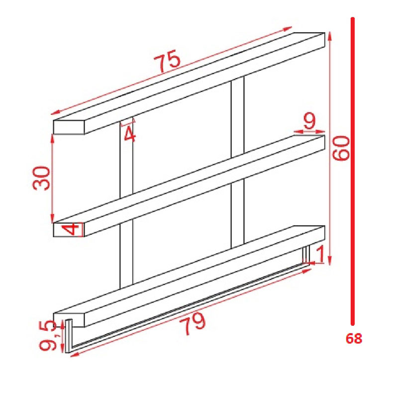Dimensions (L×W×H): 75,00000000 × 9,00000000 × 68,00000000 in