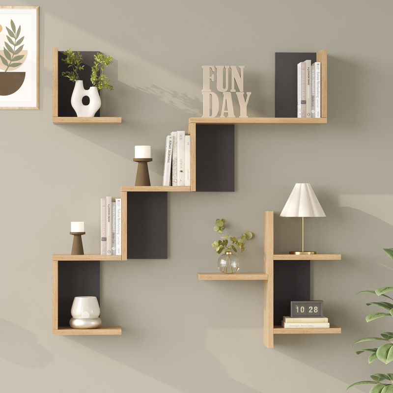 Ραφιέρα τοίχου Verso pakoworld oak με ανθρακί 99,4×14,5×103εκ