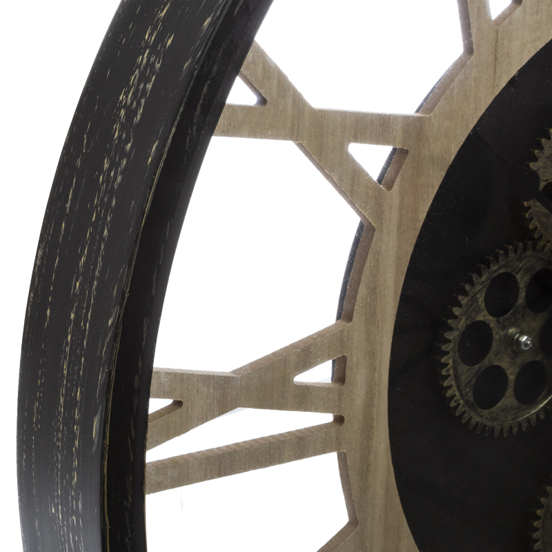 Ρολόι τοίχου Paul pakoworld μαύρο-φυσικό μέταλλο-mdf Φ57×6εκ