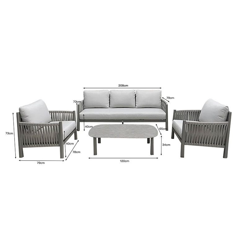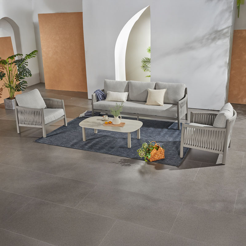 Φέρτε την κομψότητα και την άνεση στον χώρο σας με το εκπληκτικό σετ σαλονιού Feralda. Κατασκευασμένο με γνώμονα την αντοχή στις εξωτερικές συνθήκες, το πλαίσιο από ανθεκτικό υλικό σε συνδυασμό με την πλέξη του πολυεστερικού σχοινιού δίνει μια μοντέρνα και διαχρονική αισθητική. Είτε ψάχνετε για ένα μέρος να χαλαρώσετε με ένα βιβλίο είτε να διασκεδάσετε φίλους και οικογένεια, το Feralda είναι η τέλεια προσθήκη στον κήπο, την βεράντα ή το αίθριό σας.