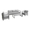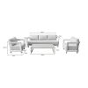 - Η επένδυση των δύο πολυθρόνων και του 3θέσιου καναπέ είναι ύφασμα ασυναγώνιστης ποιότητας σε ανοιχτό γκρι.
