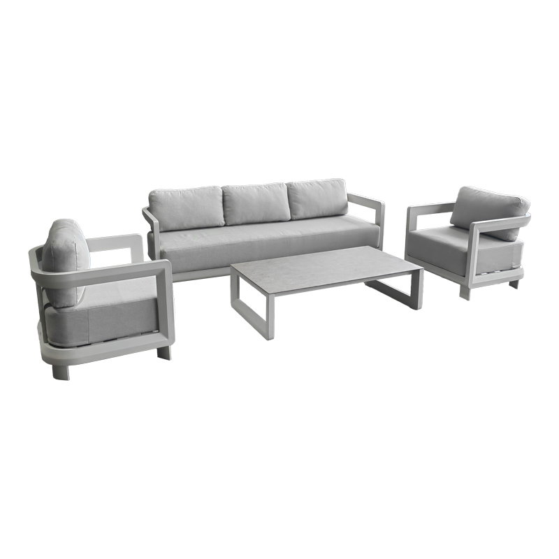 Σαλόνι εξωτερικού χώρου Jenora pakoworld μπεζ αλουμίνιο με ύφασμα σε απόχρωση ανοιχτό γκρι