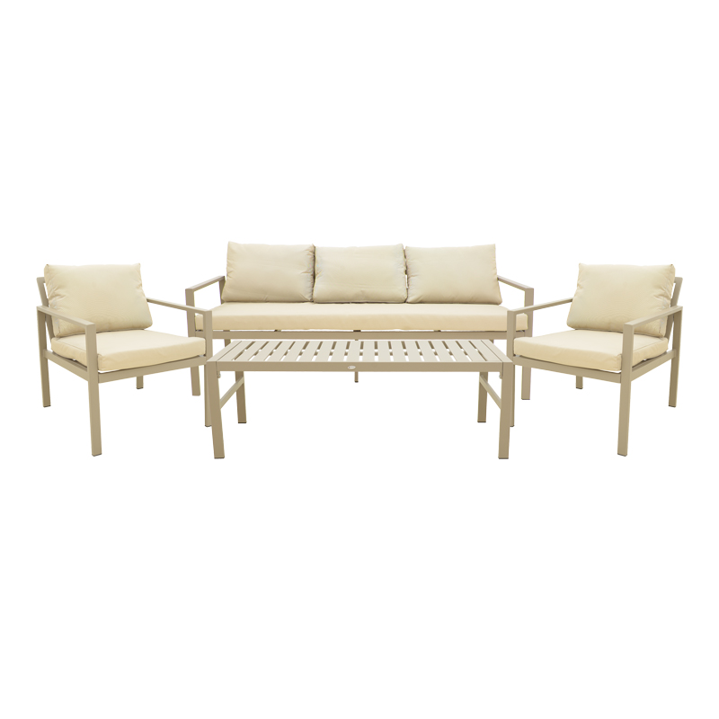 Σαλόνι Gardenly Ι pakoworld σετ 4τμχ αλουμίνιο σε απόχρωση cappuccino με γκρι-μπεζ μαξιλάρια