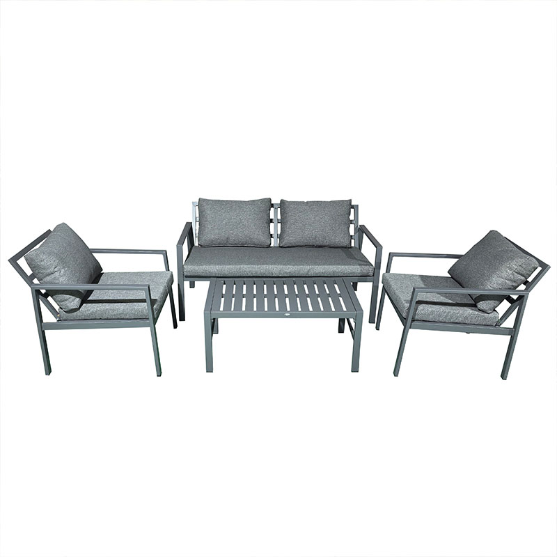 Σαλόνι Gardenly pakoworld σετ 4τμχ αλουμίνιο σε ανθρακί απόχρωση με ανθρακί μαξιλάρια