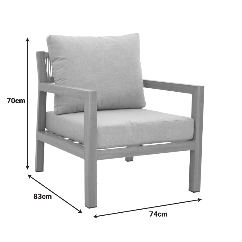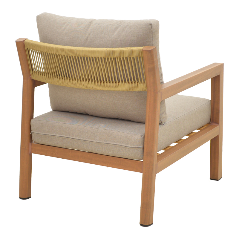 Σαλόνι κήπου Andasio pakoworld σετ 4τεμ αλουμίνιο κ σχοινί σε φυσική- μαξιλάρια σε γκρι απόχρωση